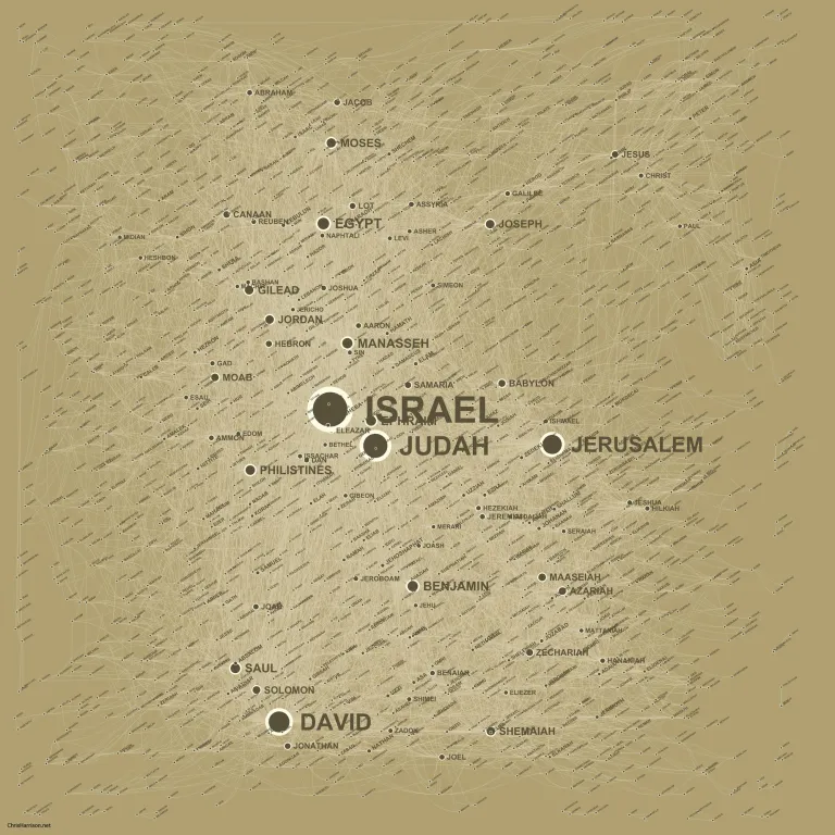 Um estudante decidiu transformar a complexidade da Bíblia em uma imagem que pudesse mostrar sua profundidade de forma clara e visualmente impressionante. A obra resultante se tornou uma das visualizações mais conhecidas do mundo religioso e acadêmico, reunindo nada menos que 63.779 referências cruzadas presentes no texto sagrado. Cada curva do diagrama conecta dois capítulos que compartilham temas, personagens, eventos, citações ou profecias. Na base, é possível identificar todos os 1.189 capítulos bíblicos, dispostos em barras verticais, onde o tamanho de cada uma representa a quantidade de versículos. As barras aparecem em sequência contínua, alternando tonalidades para diferenciar os livros, criando um alicerce sólido para o emaranhado de arcos coloridos que se erguem acima.