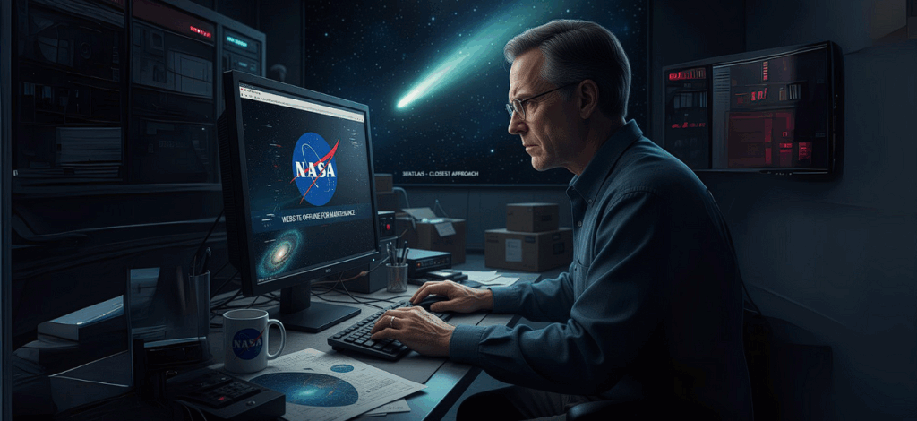 Cabo Canaveral, Flórida – Em um evento sem precedentes que gerou um misto de confusão, frustração e teorias da conspiração, o website oficial da National Aeronautics and Space Administration (NASA) saiu do ar inesperadamente na noite de ontem, em um dos momentos mais cruciais para a comunidade astronômica: a passagem mais próxima do enigmático cometa interestelar 3I/ATLAS. O incidente, que durou horas, impediu milhões de entusiastas e pesquisadores de acompanhar os dados e as transmissões ao vivo que eram esperadas para o evento.