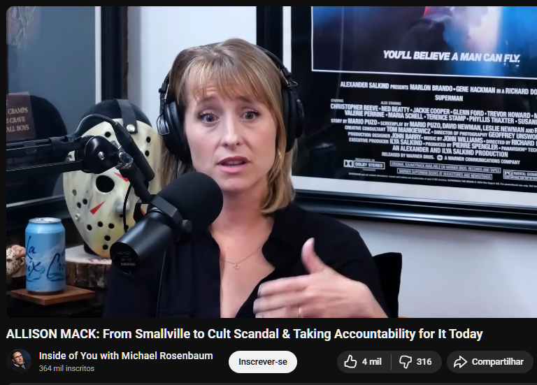 A tão aguardada entrevista de Allison Mack ao podcast de Michael Rosenbaum, publicada no YouTube com o título From Smallville to Cult Scandal and Taking Accountability for It Today, revelou de forma profunda e surpreendentemente íntima como a ex atriz de Smallville enxerga os eventos que transformaram sua vida. Depois de anos longe dos holofotes por causa do envolvimento com a organização NXIVM, que resultou em sua prisão, Mack falou pela primeira vez de maneira aberta, emocional e reflexiva sobre o passado, sobre as consequências e sobre seu processo de reconstrução humana.