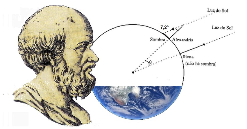 Eratóstenes nasceu em Cirene (atual Líbia) por volta de 276 a.C.. Foi um polímata: matemático, astrônomo, geógrafo, filósofo, poeta e diretor da Biblioteca de Alexandria uma das maiores fontes de conhecimento do mundo antigo.