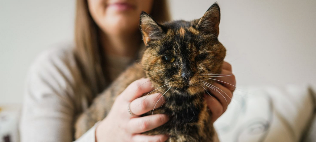 O cuidado diário envolve adaptações simples, porém fundamentais. O ambiente da casa foi organizado para facilitar a locomoção, com caminhos previsíveis, móveis sempre no mesmo lugar e acesso fácil à comida, água e locais de descanso. A alimentação é ajustada às necessidades de uma gata idosa, e o acompanhamento veterinário segue focado no conforto e na qualidade de vida, não em intervenções agressivas.