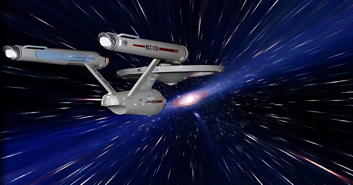 A ideia de viajar em velocidades mais rápidas que a luz ganhou popularidade mundial através da série Star Trek, onde naves interestelares utilizam o motor de dobra para atravessar galáxias em questão de horas. Na ficção, esse motor funcionaria ao “dobrar” o espaço-tempo, permitindo que a nave se desloque sem romper as leis fundamentais da física.