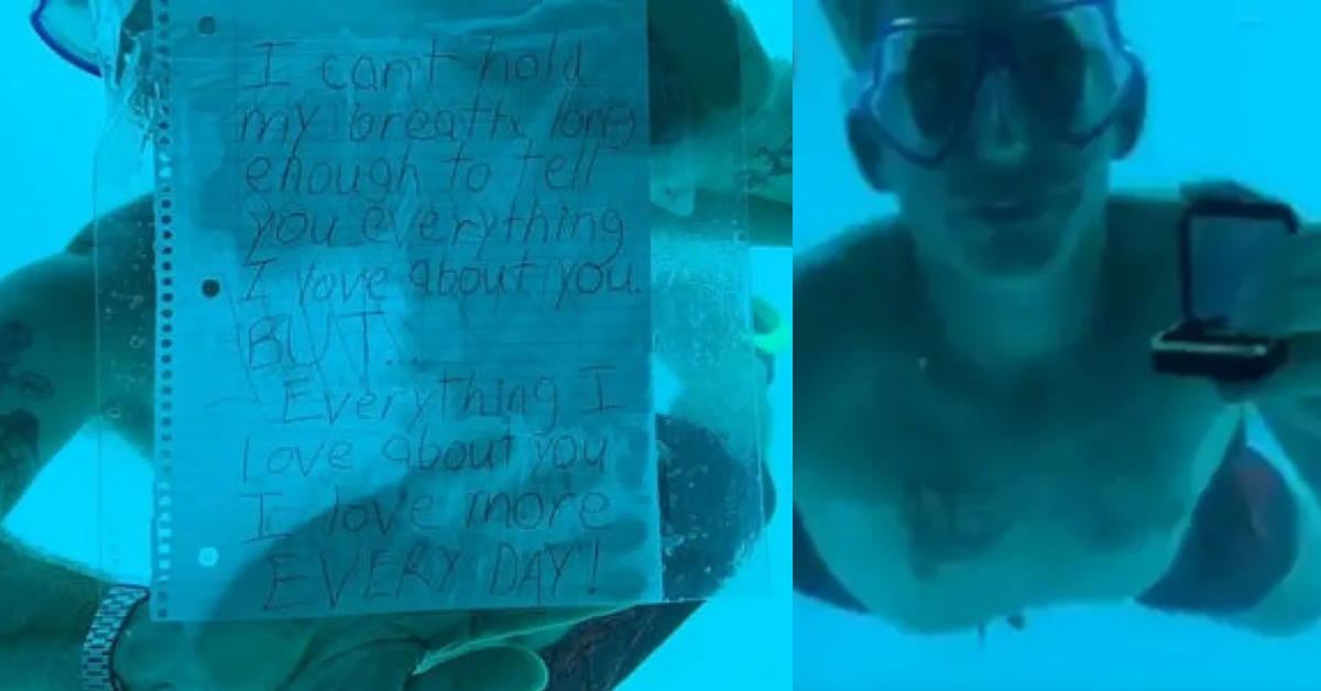 A surpresa planejada por Steven era ousada e comovente. Ele mergulhou até a janela do quarto submerso onde Kenesha estava e, do lado de fora, com uma máscara de mergulho, exibiu um bilhete escrito à mão que dizia: