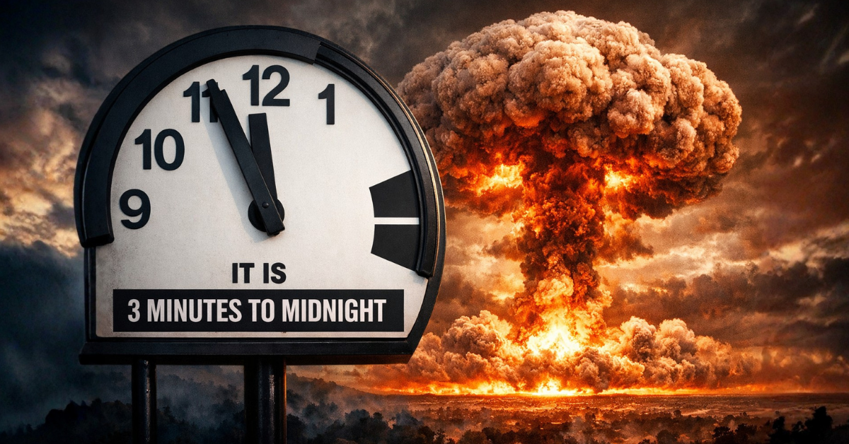 Relógio do Juízo Final passa a marcar 85 segundos para a meia-noite, recorde histórico que alerta para riscos globais nucleares, climáticos e tecnológicos.